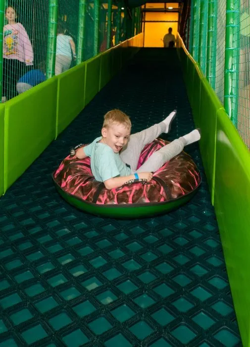 Медведия – большое приключение для самых маленьких! Пространство включает батутный комплекс, игровую полосу препятствий, 3D-лабиринты, комнаты для детских праздников и семейное кафе «Сытый мишка». Для всех проживающих – скидка 50% на посещение.