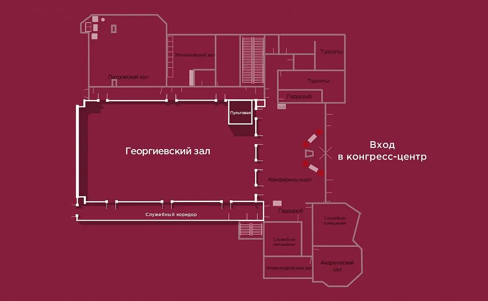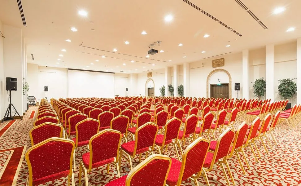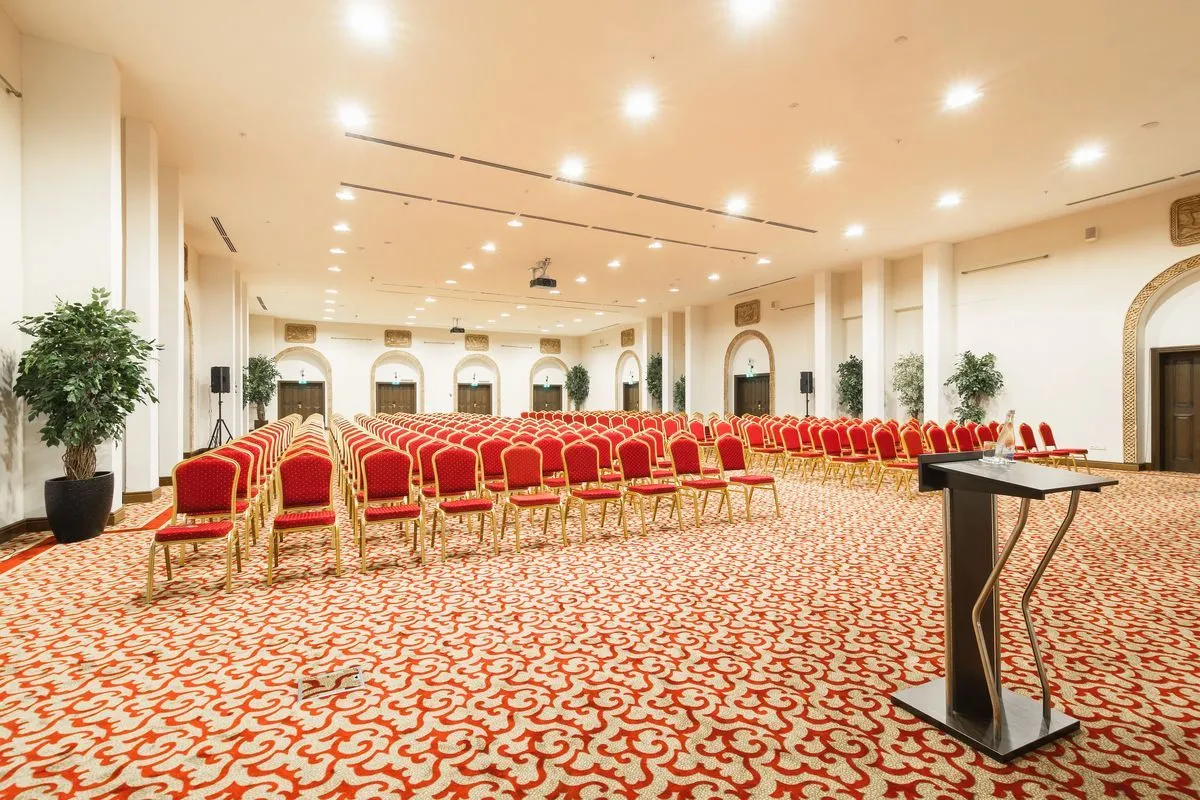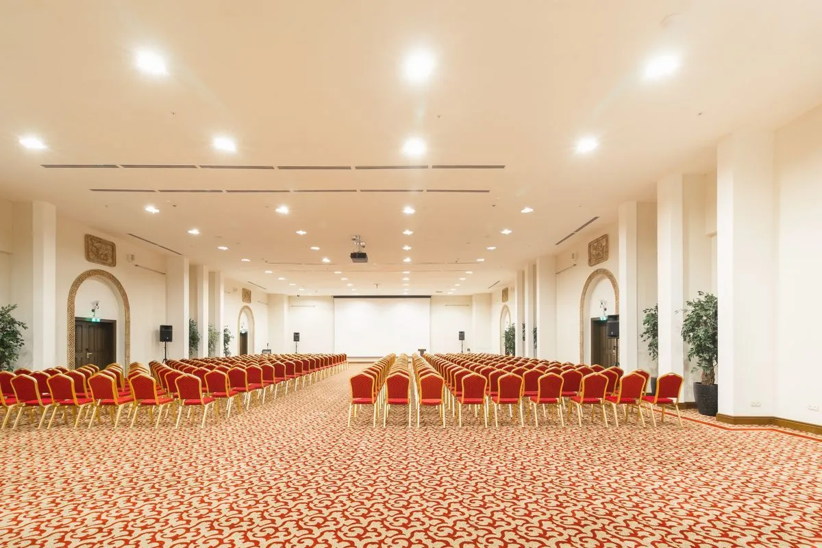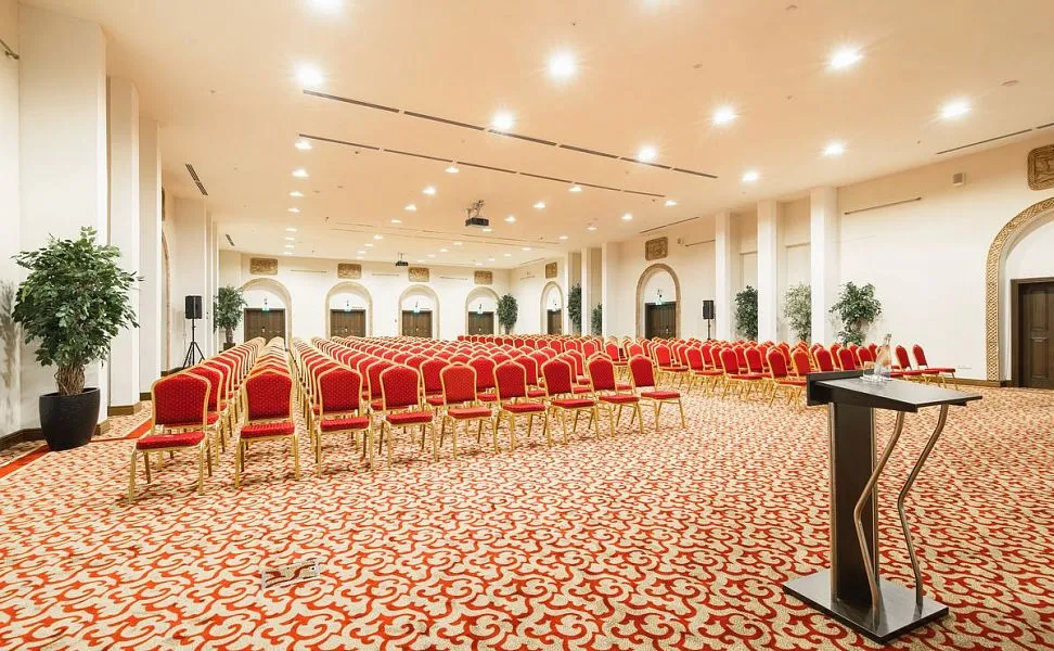 Этот мультифункциональный зал площадью 459 м² готов принять масштабные конференции, саммиты, выездные корпоративные встречи, презентации и торжественные мероприятия