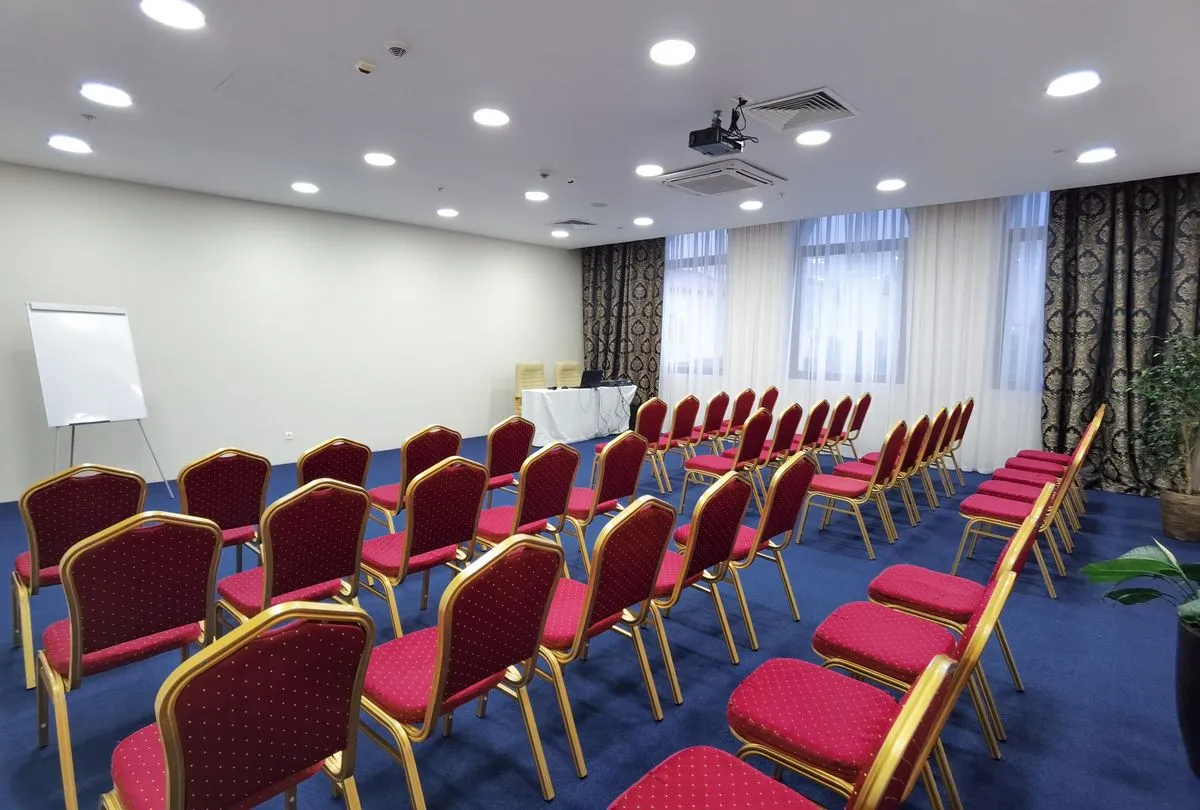 За столом переговоров могут одновременно собраться до 30 человек. В распоряжение гостей предоставляется необходимое оборудование для эффективной работы – мультимедийный проектор, современный презентационный экран, флипчарт, интернет с бесплатным доступом.