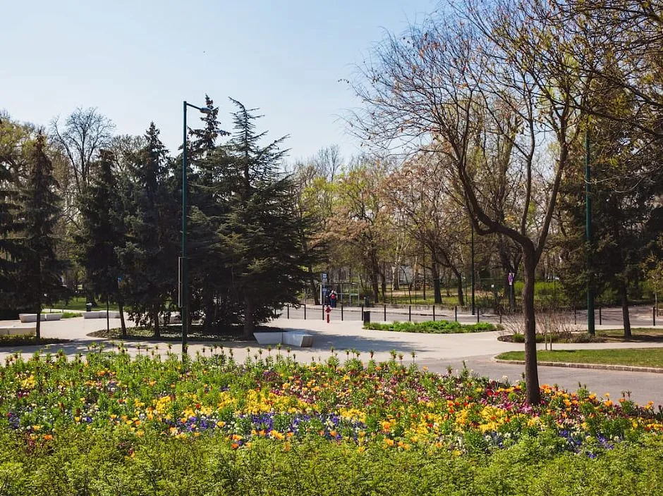 В начале лета парк превращается в огромный ароматный сад: расцветает знаменитый розарий, заложенный ещё в первой половине прошлого века. Клумбы расположены так, что образуют настоящий цветочный лабиринт с более чем 30 видами роз. В тени аллей стоят скамейки, а в глубине можно найти аккуратные ротонды и фонтан.
