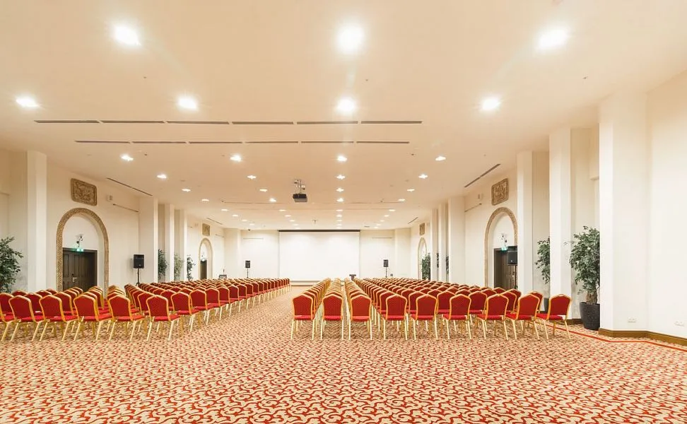 Этот мультифункциональный зал площадью 459 м² готов принять масштабные конференции, саммиты, выездные корпоративные встречи, презентации и торжественные мероприятия