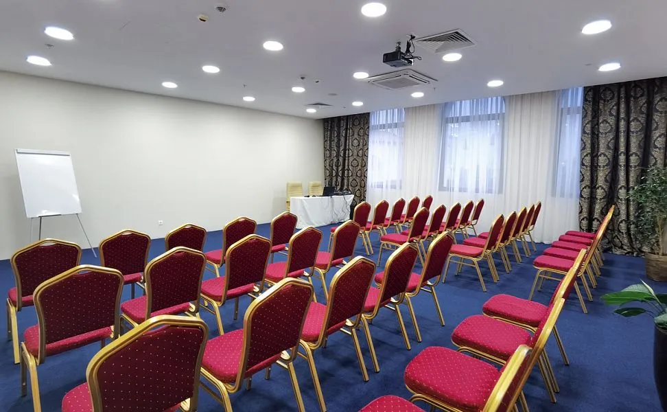 За столом переговоров могут одновременно собраться до 30 человек. В распоряжение гостей предоставляется необходимое оборудование для эффективной работы – мультимедийный проектор, современный презентационный экран, флипчарт, интернет с бесплатным доступом.