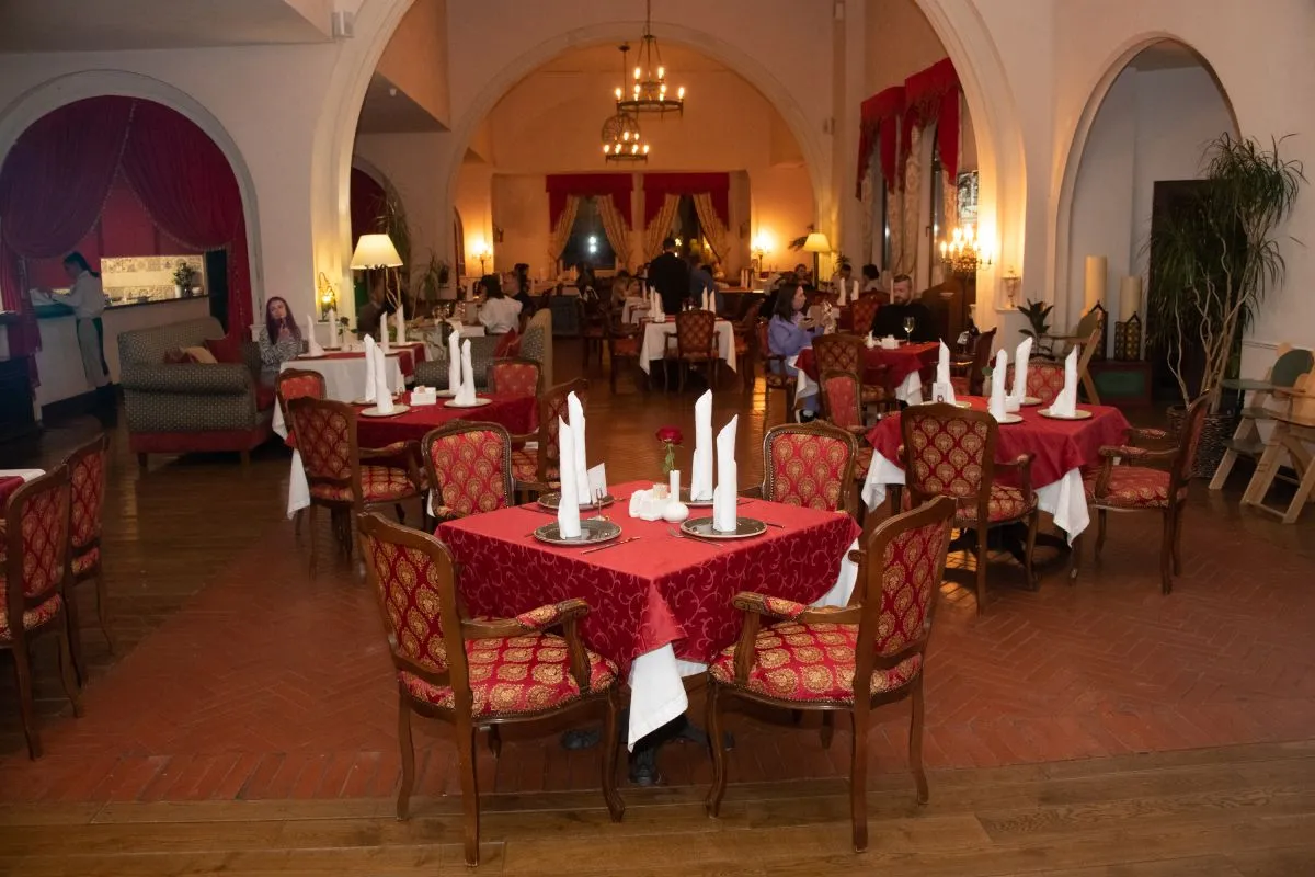 Зал рассчитан на 100 гостей и идеально подходит для торжеств — от свадеб и банкетов до камерных семейных ужинов. Особое место в календаре занимает традиционный новогодний ужин, собирающий гостей за щедрым столом в атмосфере праздника.